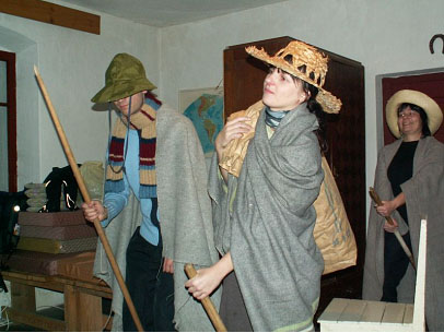 Sněhové podmínky nebyly valné, kolem chaty bylo něco do 5 cm, prostě hodně málo, i saně se po silnici a cestách nedaly tahat. Povzbuzení Inžovou informací, že dole málo sněhu na hřebeni nad Źacléřem dostatek, jsme šli odhodlání běžkovat. Jak se brzo ukázalo naděje rychle pohasly, už při vstupu do lesa bylo vidět, že běžkování v nižších polohách nepůjde. V lese nebylo nic a výše na hřebeni v 800 m.n.m. taky ne. Sníh na běžkování byl až po několika kilometrech kolem Rýchorského kříže. Většina si nezalyžovala, jelikož až tam lyže nedonesla, ty totiž v beznaději odpočívaly v lese. Večer nás ale romaticky naladil krb a večeře. Sprcha vodou ohřátou pomocí v pod topícím kotli taky potěšila. Život jak za starých času, jen ta elektřina to trochu kazila. V něděli většina osazenstva zůstala dopoledne doma, jelikož sníh nebyl a tak se raději připravoval guláš. Někteří vyrazili na pěší procházku, inverze stále přetrvávala a tak na kopcích se stále ukazovalo slunce. Odpoledne byl čas na Inžovi hry. Nejdříve ty sportovnějšího rázu, pak místopisné a nakonec ty kulturní (scénky). Hlavní tématický vliv na jednotlivé aktivity měl bobr podle názvu části Žacléře. Pro aktivity se využila i ta trocha sněhu kolem chalupy. Zvláště získání informací v místopisné části se zdálo být náročné, ale jako vždy platí, nejvíce se dovíš v hospodě. Večerní program byl až po večeři, oba týmy se na scénky důkladně připravovaly. Rozdíl bodů po prvních dvou částech byl jen jeden bod tzn. scénky rozhodovaly. Tématy scének byly např. správně namazaná lýže, Krakonošovi vousy ale i ukolébavka pro Amálku. Zábavy si užili jak učinkující, tak porota. Ta to měla velmi těžké, rozhodnout, kdo byl lepší bylo náročné. Kdo vyhrál je jedno, i když někteří prohru nesli těžce. V pondělí byla touha po sněhu a tak většina odjela na Hoffmanovi boudy, kde na svazích Černé hory bylo sněhu dostatek. Počasí již nebylo tolik mírumilovné a tak se po návratu většina usadila na čas u krbu a rozehřívala se a rozehřívala. Po večeři (guláš) nastala opět zábava. Na rozjezd se po dvojících pil brčkem z půllitru ve dvojicích vinný střik. Pak opět následovaly scénky a hlavní téma opět bobr. Bobova hra v hledání krabičky od zápalek opět potvrdila známe rčení, že pod svícnem je vždycky tma. Starý rok se rychle blížil svému konci, tak rychle rychle udělat chlebíčky, najít šampusy, oblíknout a ven. Oproti loňsku jsme nový rok přivítali alespoň na troše sněhu. Orchestr petard a ohňostrojů byl vítečný, munice bylo všude dostatek. Aź se obloha sklidnila, proběhl u Inži tradiční Novoroční fotbálek, děvčata ho sledovaly od tepla krbu. Zápolení se protáhlo na hodinku. Následný program v chatě byl již poklidný, takže všichni ve zdraví přežili a nastoupili do nového roku. V úterý pod dlouhém vyspávání nasledovalo uvedení chalupy do původního stavu a odjezd do matičky Prahy. David