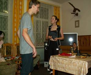 Jakmile jsme se najedli, přišel Mikuláš s andělem a čertem za námi. Asi jsme byli po celý rok opravdu hodní, protože měli plný koš dobrot. Zadarmo nám je ale nedali. Vymysleli si na nás – jako již tradičně – scénky, díky nimž jsme měli možnost poznat, co je v nás všechno skryto. Takže z Mišice se stala parádní prodavačka v sex-shopu, ze Sixťáka podvedený manžel, z Barči personalistka, z Viktora učitel lyžování, který psychicky neunese sexuchtivou přítelkyni, z Güntera německý turista a z Kačky břišní tanečník. Peter konečně našel práci a JPK si užila s Králíkem.