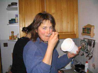 V sobotu ráno dojíždějí ještě poslední opozdilci, drazí dokonce i Bols, který ale uz nestihnul společný výlet. K snídani jsou slibované čerstvé lívanečky. Dělíme se na skupinky podle výkonu a nutnosti kojit své ratolesti a vyrážíme. Jedu se skupinkou na sever, částečně po asfaltu, částečně terénem, a i vodními toky (nebojte se, Plaváček bude !). Zřícený hrad ani hospoda samozřejmě nesmí na cestě chybět. Večer zkontrolujeme kvalitu piva vesnické silně zakouřené hospody při hraní fotbálku před ní. Gril se už mezitím doma roztápí a gastronomická část akce může začít. Míša z práce přinesla dobré omáčky (né nadarmo se jí u kanoistů teď říká Mišice z Byšice). Asi nejlepší je nakládaný hermelín a brusinková omáčka.