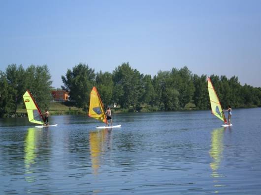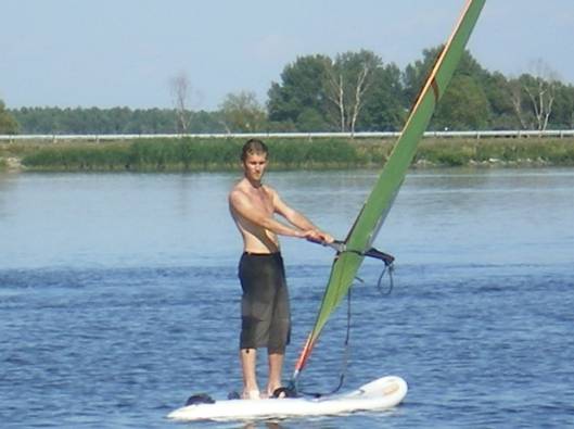 Účastníci zájezdu: Danča, Bob, H6, Míša, Viktor, Charlie, Líba, Urbik, Koblih V tento horký letní víkend jsme se vypravili do známého windsurfařského revíru na Nové Mlýny na jižní Moravě, kde Danča zamluvila v půjčovně několik surfů na sobotu i neděli. Na místo do kempu ATC Merkur v Pasohlávkách jsme dorazili v pátek někdy před půlnocí a místní omladina mířící na diskotéku nás přivítala radostným „Pražáci!“. Sixťákovo auto (Danča, Bob, Koblih) a Urbik postavili stany v kempu a zašli na jedno pivo (možná by zašlo i na víc piv, ale vyhazovací metody místních hospod jsou velice jednoduché: „Zavřít okýnko, zhasnout, a oni odejdou dobrovolně“). Charlieho posádka (Míša, Líba, Viktor) se rozhodla přespat kdesi na divoko. No, možná se na rozdíl od nás dobře vyspali, ale zase přišli v sobotu po ránu o spoustu důležitých informací od vedlejších nocležníků, jako třeba, že „Brnoooo – Břeclaaaaaaaav – Mikuloooooooooov“. A co jsme vlastně celý ten víkend prováděli? Windsurfing – hlavní aktivita víkendu; bohužel Dančou objednaný vítr se asi někde po cestě zdržel, takže nemělo ani cenu si půjčovat prkna na celý den; půjčili jsme si tedy vybavení alespoň každý den tak na hodinku a někdo své windsurfingové umění zdokonaloval, někdo teprve nabýval nejzákladnější dovednosti, ale myslím, že všichni byli nadšení J a pojedou příště na surfařskou akci znovu Šlapadla – skvělý dopravní prostředek pro samozvané instruktory windsurfingu; můžete radit do sytosti a nikdo nepozná, jestli opravdu něco umíte; vyzkoušeli jsme a můžeme doporučit Beach - Pražilo na nás sluníčko a nejoblíbenější pozicí se záhy stalo střídání, protože střídající se mohl aspoň na chvilku schovat do stínu; ještě tak dvě hodinky a možná bychom se solidně rozehráli ;) Koupačka – voda se sice zelenala sinicemi a řasami, ale hlavně že byla studená a mokrá; jen škoda, že plovoucí nafukovací ledovec byl placený Návštěva Mikulova – v Mikulově je opravdu krásně a přistihli jsme se, jak si se zájmem prohlížíme vývěsky místních realitek s nabídkou domků a vinic Kolo – v sobotu se „jeli projet“ jenom Sixťák s Viktorem (vrátili se s velmi výrazným opálením typu „cyklista“), v neděli pak většina účastníků vyjela na výlet do Lednice (podrobnosti bohužel nemůžu poskytnout, protože jsem do té většiny nepatřila) Pár fotek: