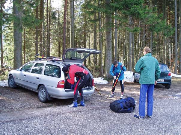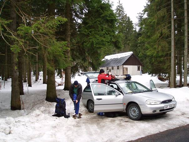 V sobotu ráno, ještě v Praze se probouzíme do deštivého počasí. Na našem záměru vyrazit na letošní poslední zimní vagón to ale nic nemění. Pro většinu účastníků je to letos první a pravděpodobně i poslední možnost zaběžkovat v Jizerských horách. Účastníků málo, plníme Sixťákovo Mondeo a hurá do hor. Z Prahy odjíždíme v 9 hodin ráno. Posilněni čerstvým pečivem z Tanvaldské pekárny konečně parkujeme na sněhovém podkladu na Václavíkově studánce. A do stopy.