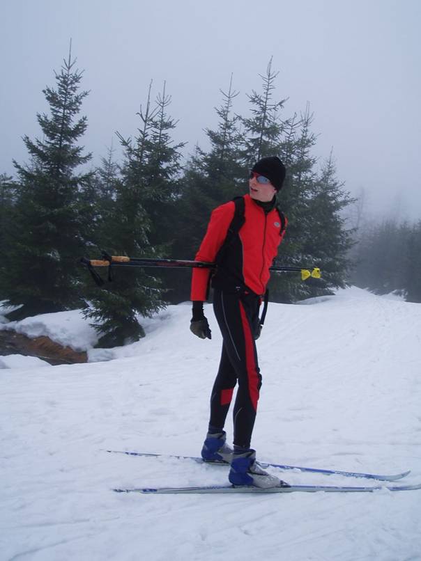 Potěšeni předpovědí počasí necháváme věci do mokra v autě a jedeme přímo na Knajpu. Někdo to bere tréninkově, ale do kopce na hůlky přeci jenom došlo...