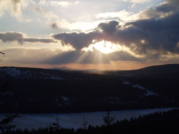 Večer pak již následoval příjemný návrat k autu na Václavíkovu studánku po úžasně rychlém sněhu, doprovázeném krásnými výhledy a západem slunce...