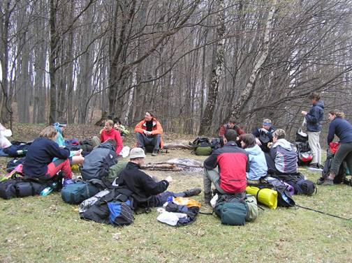 Večer náčelník neomylně určuje příjemné místo ke spaní ve výšce 697 m.n.m. , kde nechybí ohniště a tak probíhá tradiční buřtovačka. Zpestřením večera je taky Sixťákův benzínový ohříváček na nohy, který ale podle zapšklejší poloviny výpravy vůbec neohřívá.